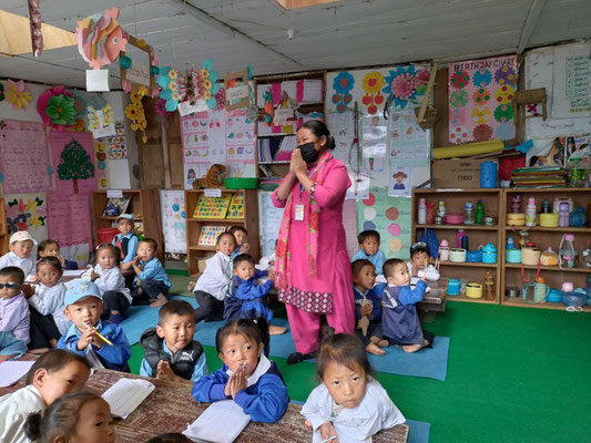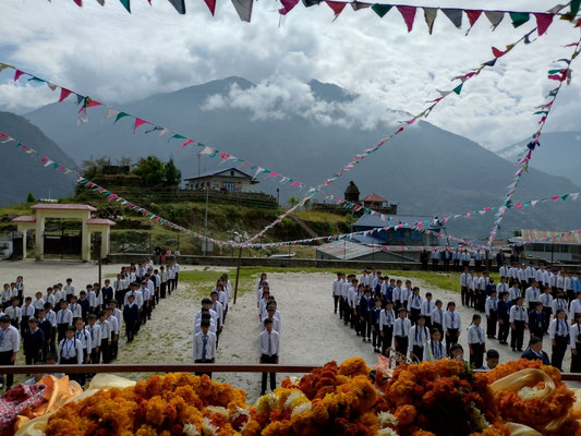 A long day in Chheskam is coming to an end. We have experienced a lot today. The first meeting was already in the morning. Then there was the inauguration of the new school. They prepared a big welcome. All the pupils gave us a flower garland. A total of 760 pupils. :) We looked like Christmas trees. Then we had a look around. It has turned out very nicely. Two or three things still need to be improved. Wonderful. I am happy.
