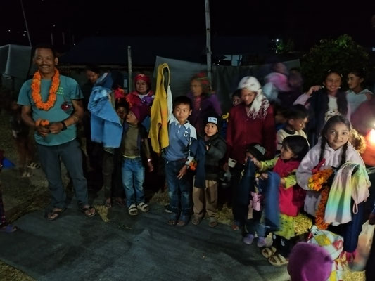 Am Abend kamen noch Kinder der Kami Kast vorbei. Wir haben Kinder Kleider verteilt.