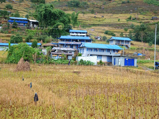 Nun sind wir bereits seit einer Woche am laufen. Leider meit es das Wetter noch nicht gut mit uns. Jeden Tag haben wir Regen. Unsere Kleider werden nicht ganz trocken, alles ist ein bisschen feucht. Denn zum Regen haben wir eine hohe Luftfeuchtigkeit. Von aussen sind wir vom Regen nass und innen sind wir am schwitzen fast so wie in einer Sauna. :) Wir sind uns dieses Klima nicht gewohnt. Für Nepal ist dieses Wetter für diese Jahreszeit auch ungewöhnlich. Normalerweise ist es im Oktober immer schön. In den oberen Bereichen ist Schnee gefallen. Teil schlecht ausgerüstete Trekker mussten gerettet werden. Wir werden sehen wie weit wir kommen, wir werden nichts riskieren. Obwohl wir gut ausgerüstet sind. Aber ab Montag sind die Prognosen sehr gut. Drückt uns die Daumen.